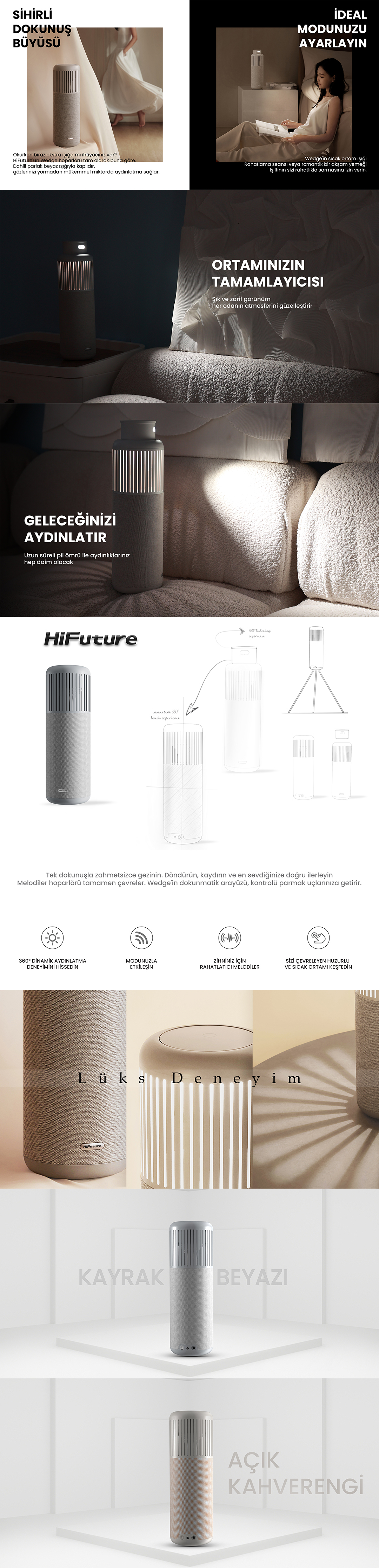 HiFuture Wedge, modern tasarımı, yüksek ses kalitesi ve etkileyici aydınlatma özellikleriyle evinizin vazgeçilmez parçalarından biri olacak.